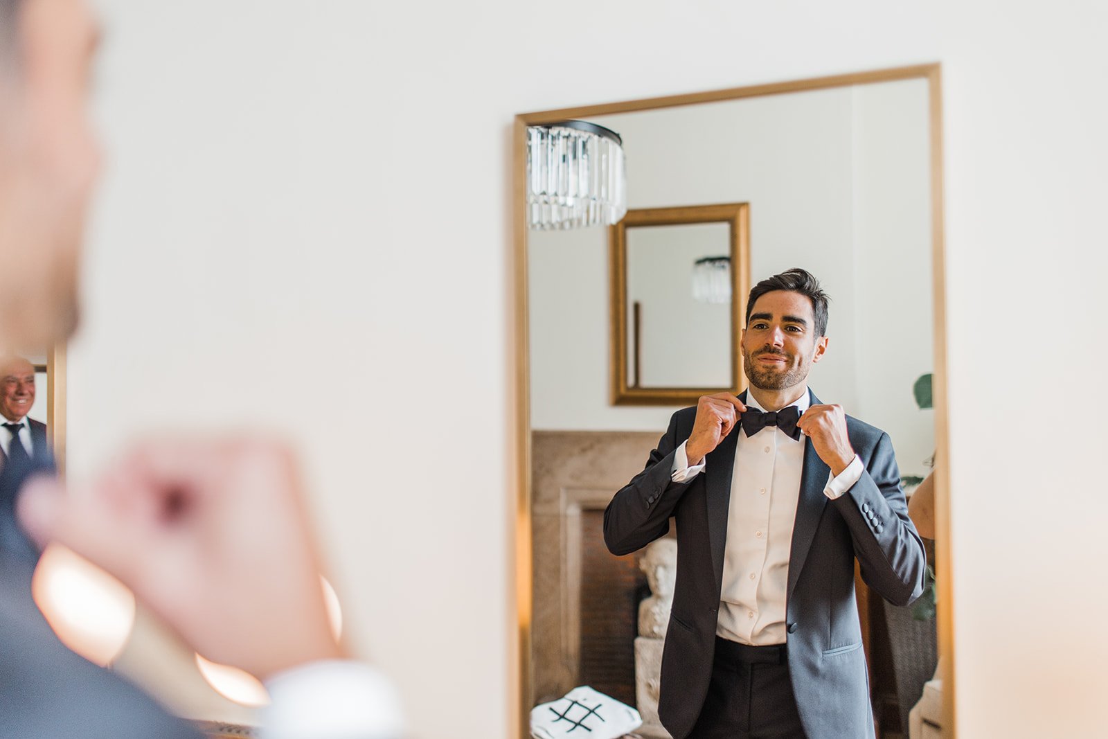 With Lorenzo’s family based in France, it was really important for him to get some quality time with his dad and brother before the celebrations kicked off. They got ready together, tying bow ties, tidying hair, and let’s just say this super cool trio absolutely took ‘groom getting ready photos’ completely in their stride!